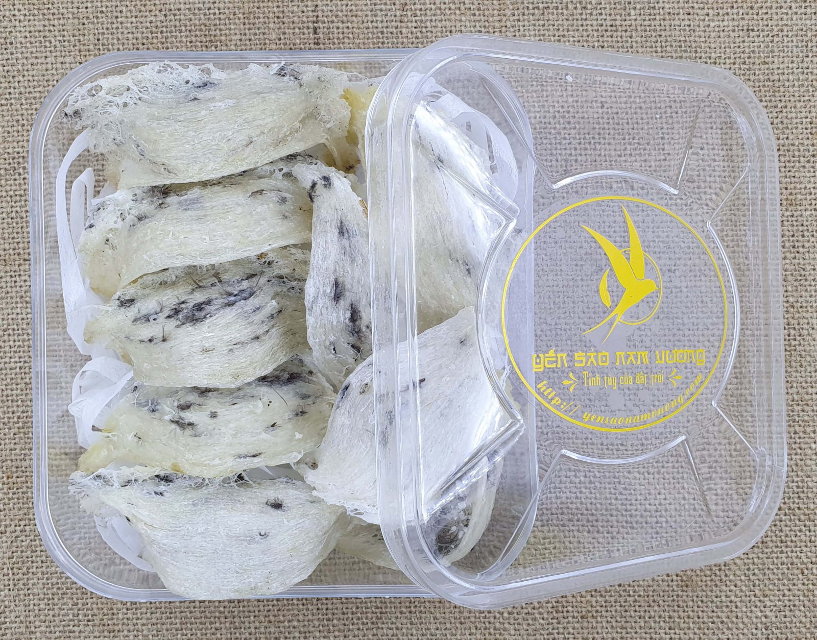 Tổ yến thô được thu hoạch từ hệ thống nhà dẫn dụ yến chuyên nghiệp của trang trại Yến Sào Nam Vương. Sau đó được tuyển chọn, ngâm nước cho nở đều, rồi được những người thợ yến dùng nhíp gắp sạch lông bám trong tổ yến và đưa vô máy sấy lạnh (sấy thăng hoa) để sấy khô giúp tăng thời gian bảo quản.